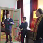Le jour de notre visite, à midi, nous avons été chaleureusement accueillis au pied du grand escalier de chêne massif par M.PASCAL. Accroché au mur du couloir, l’arbre généalogique de la famille de Wangen-Geroldseck aux Vosges nous indique les personnages illustres qui ont vécu ici.