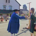 Des membres du cercle d'Histoire(s) de Wangen emmènent habitants et visiteurs du village dans un voyage à travers le temps pendant près d'une heure trente au son de l'accordéon.