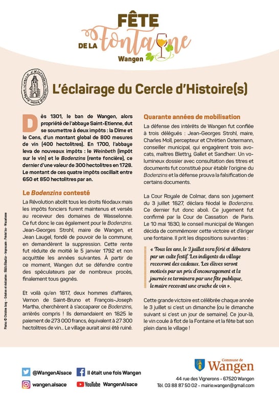 Les droits féodaux ont été abolis à la Révolution mais la commune de Wangen devait continuer à payer une rente appelée "Bodenzins".
