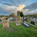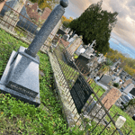 Près de sa tombe une plaque indiquant ses titres: chevalier de la légion d'honneur, chevalier de l'ordre de Léopold, médaille d'or de la Renaissance française et deux lignes d'un poème de Verlaine:
