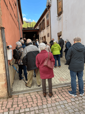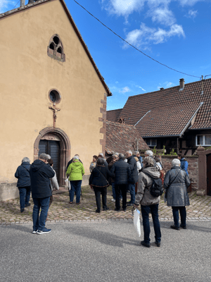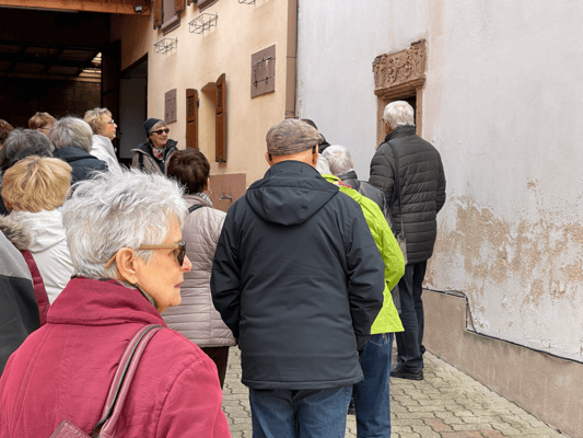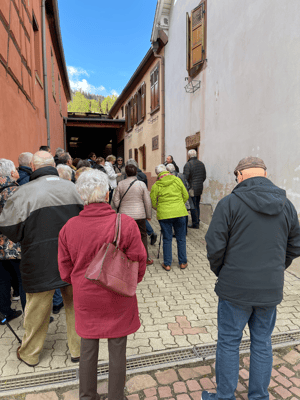 Voilà des retraités qui aiment bouger et qui semblent avoir apprécié la visite du village ! La classe 1948 d'Illkirch-Graffenstaden effectue en moyenne une visite par mois du mémorial de Schirmeck au carnaval de Nice et se rend même à l'étranger pour les grandes occasions.