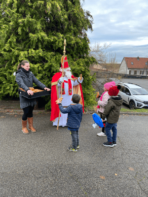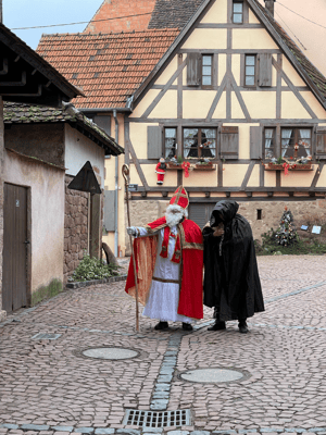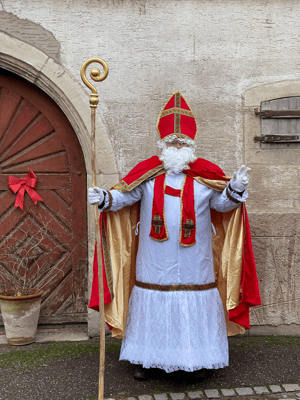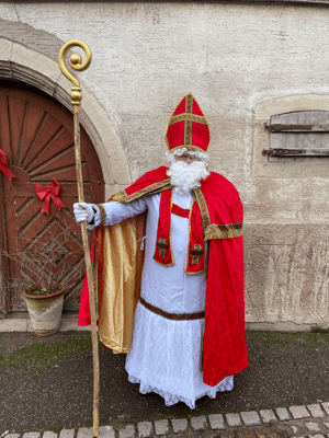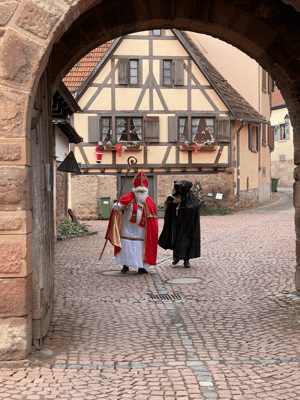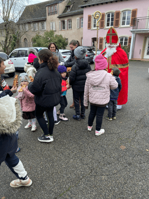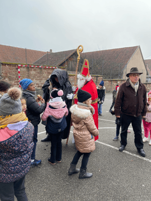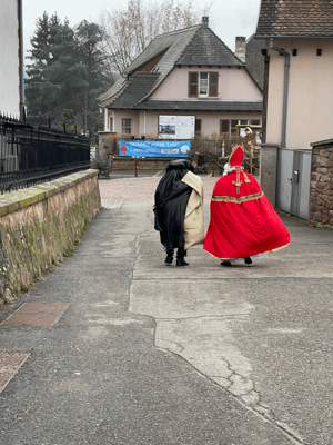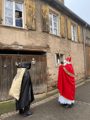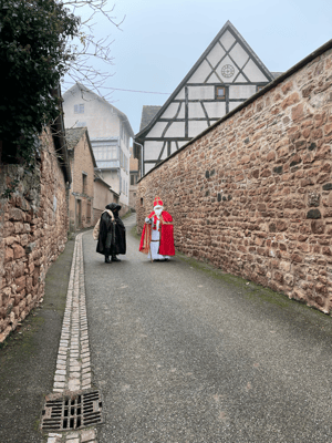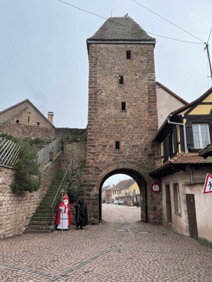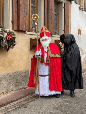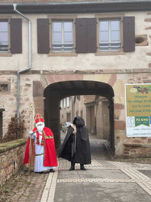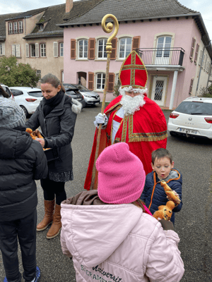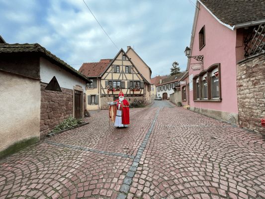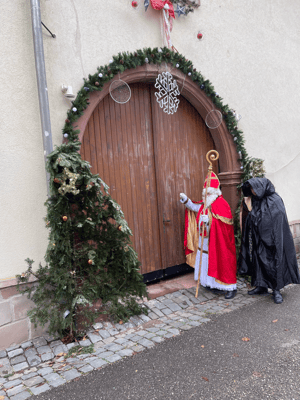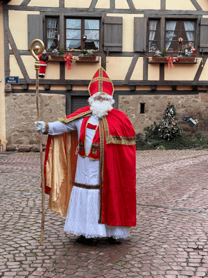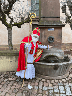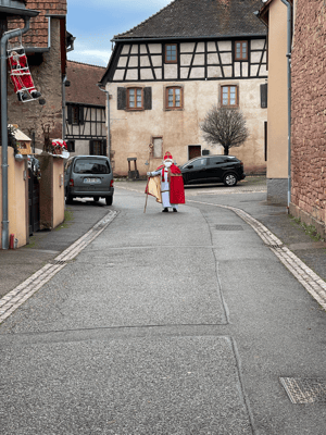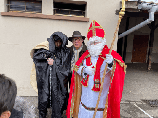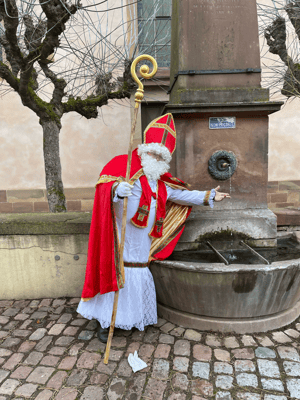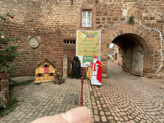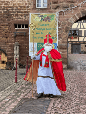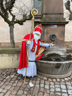 Pour son premier jour à Wangen, St Nicolas a fait un passage au Freihof avant d'entamer sa visite du village. Demain il sera à l'école et continuera sa découverte de la cité médiévale.