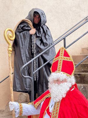 St Nicolas et Hans Trapp ont ensuite beaucoup apprécié la visite commentée du village et de ses endroits remarquables. Ils ont promis de revenir l’année prochaine avec leur âne à qui nous souhaitons un bon rétablissement avant Noël