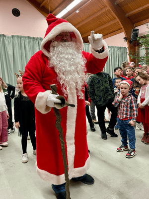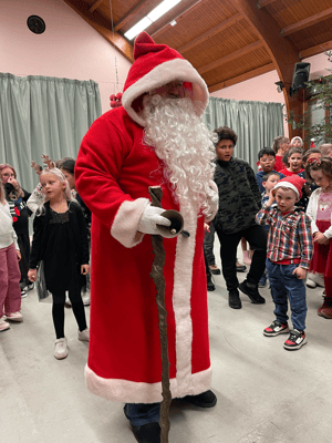 Les enfants ont chanté "Petit papa Noël" pour l'accueillir . La distribution de friandises et les séances photos ont clôturé le spectacle.