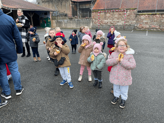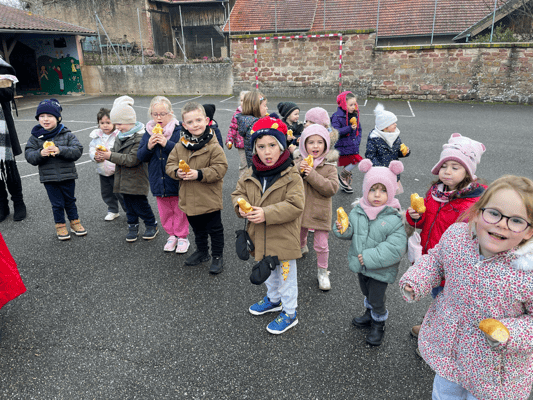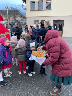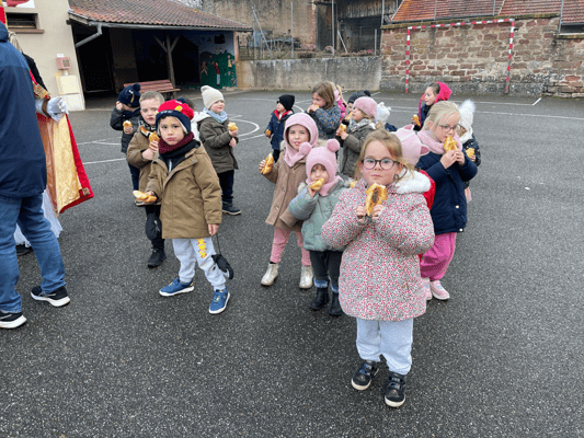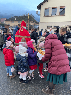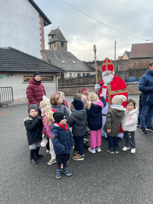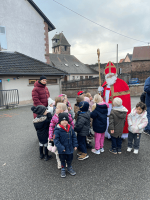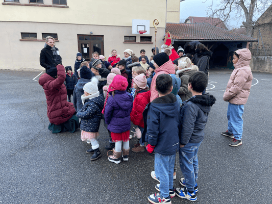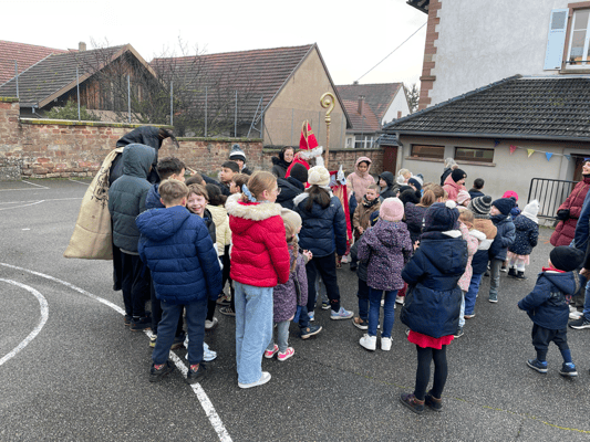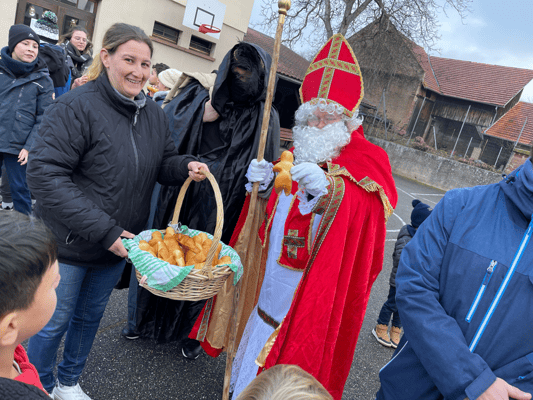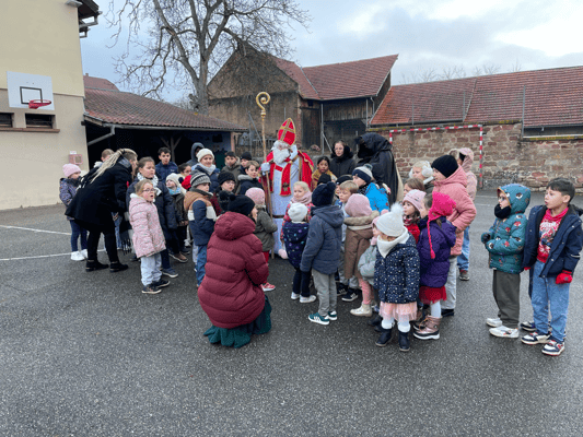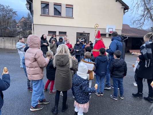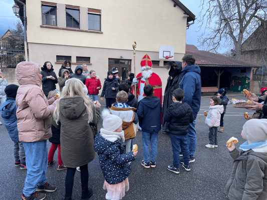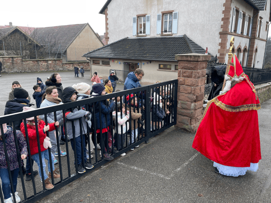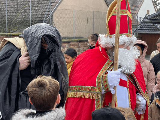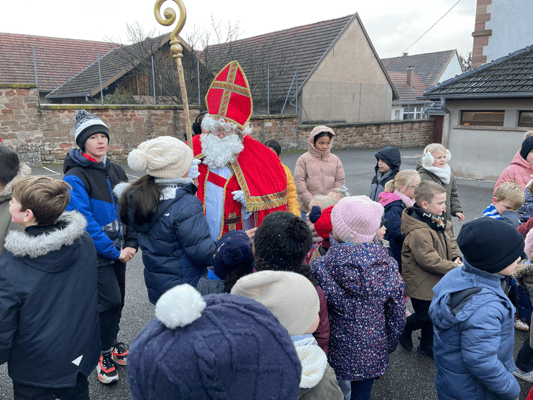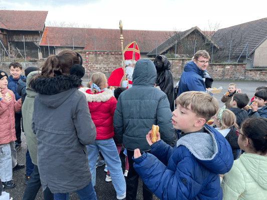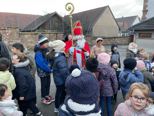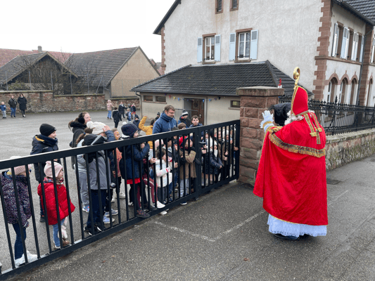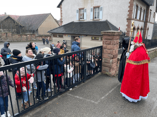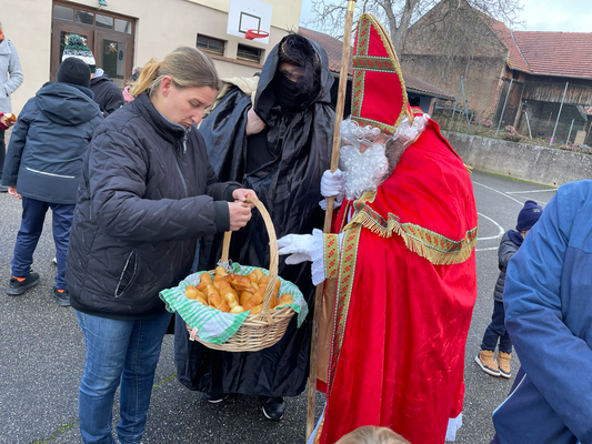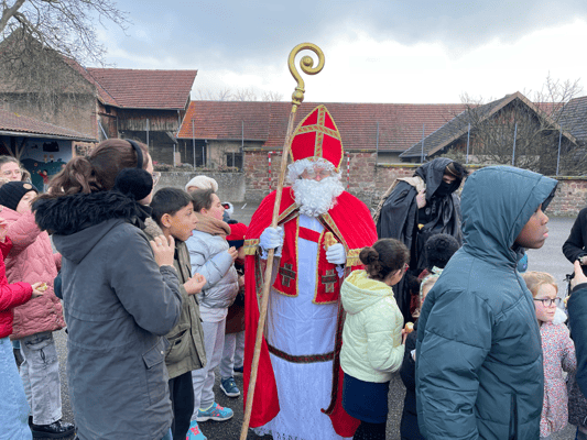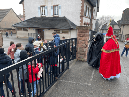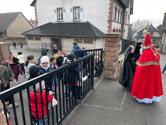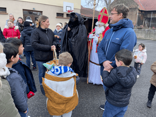 Avec un jour d’avance, Saint Nicolas et le Père Fouettard sont passés à l’école de Wangen pour y saluer les enfants.